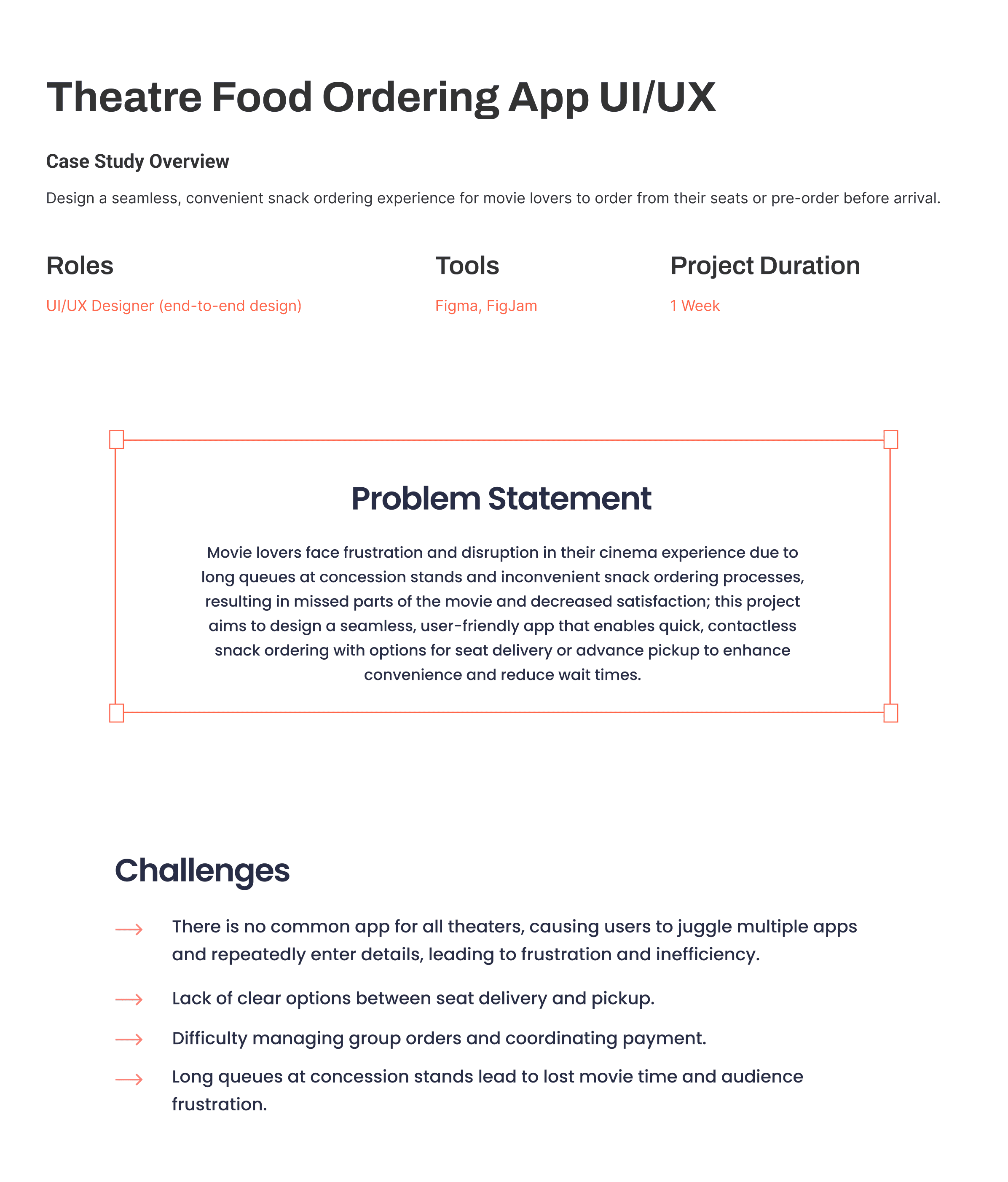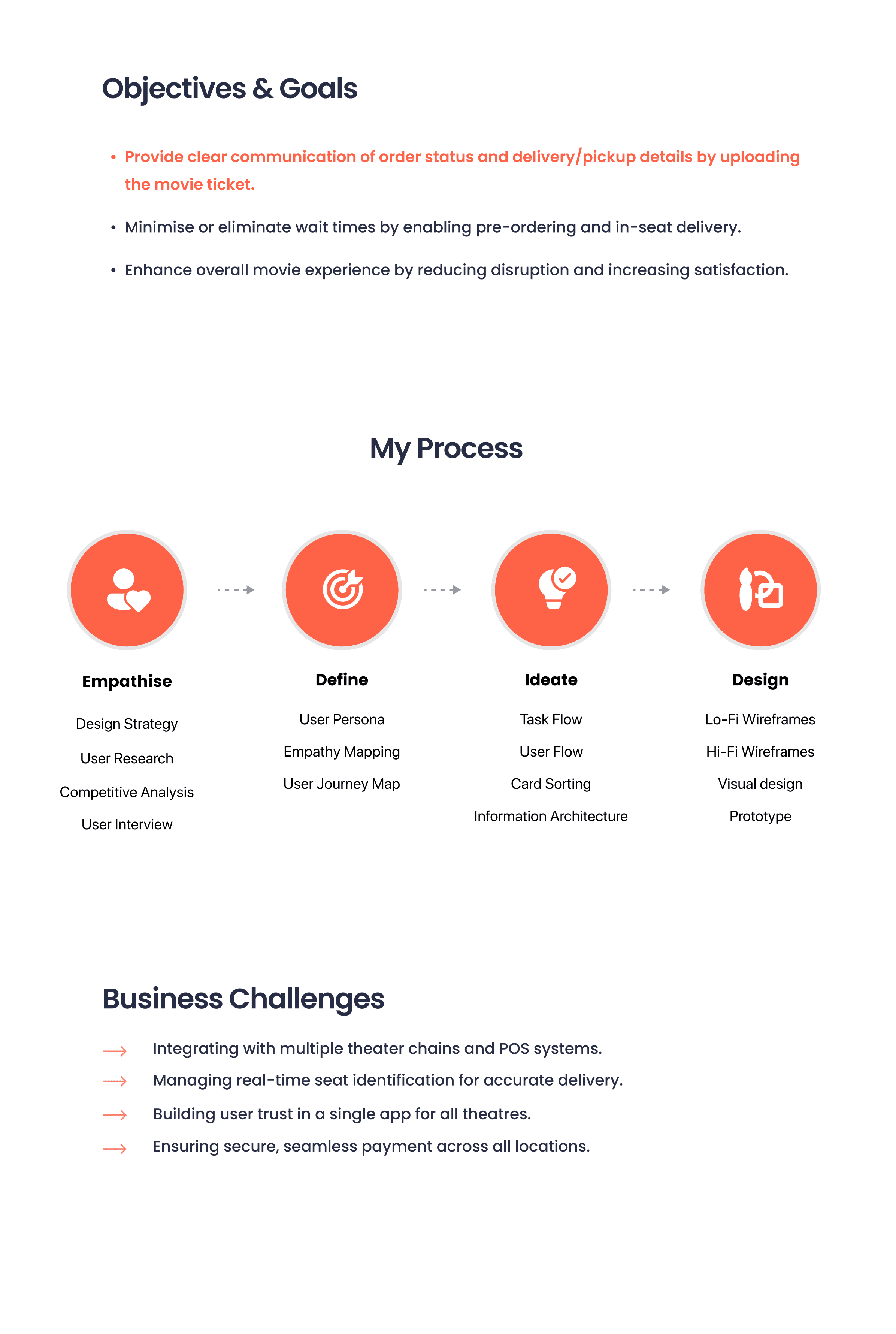 Design a seamless, convenient snack ordering experience for movie lovers to order from their seats or pre-order before arrival.
